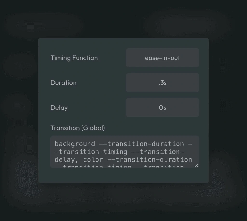 You’re not limited to using .transition and var(--transition). If you want to set a custom transition style on an element, but reference specific global transition properties, you can easily do this.